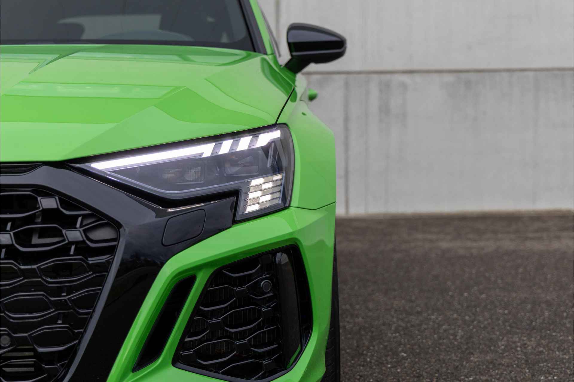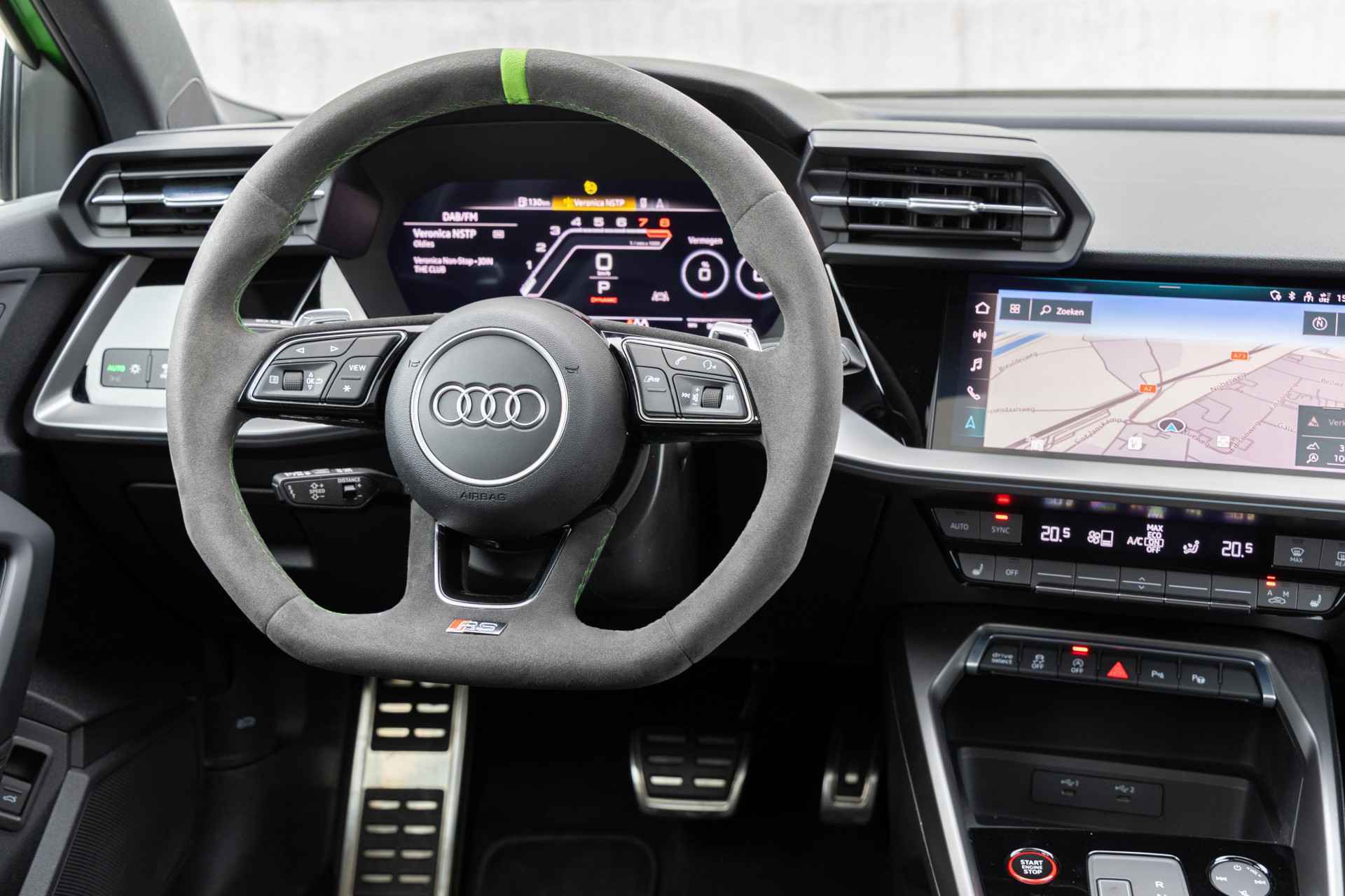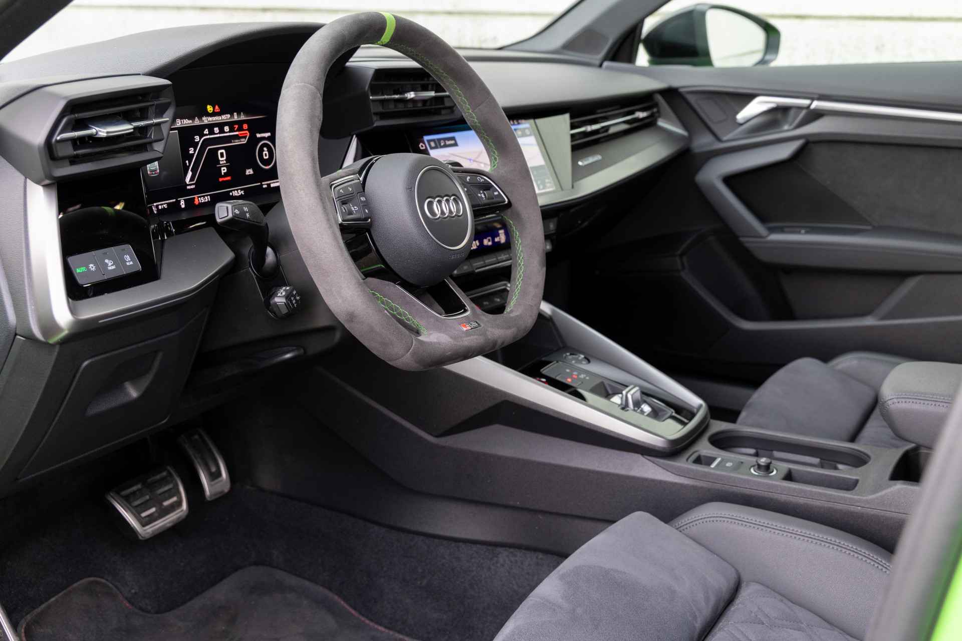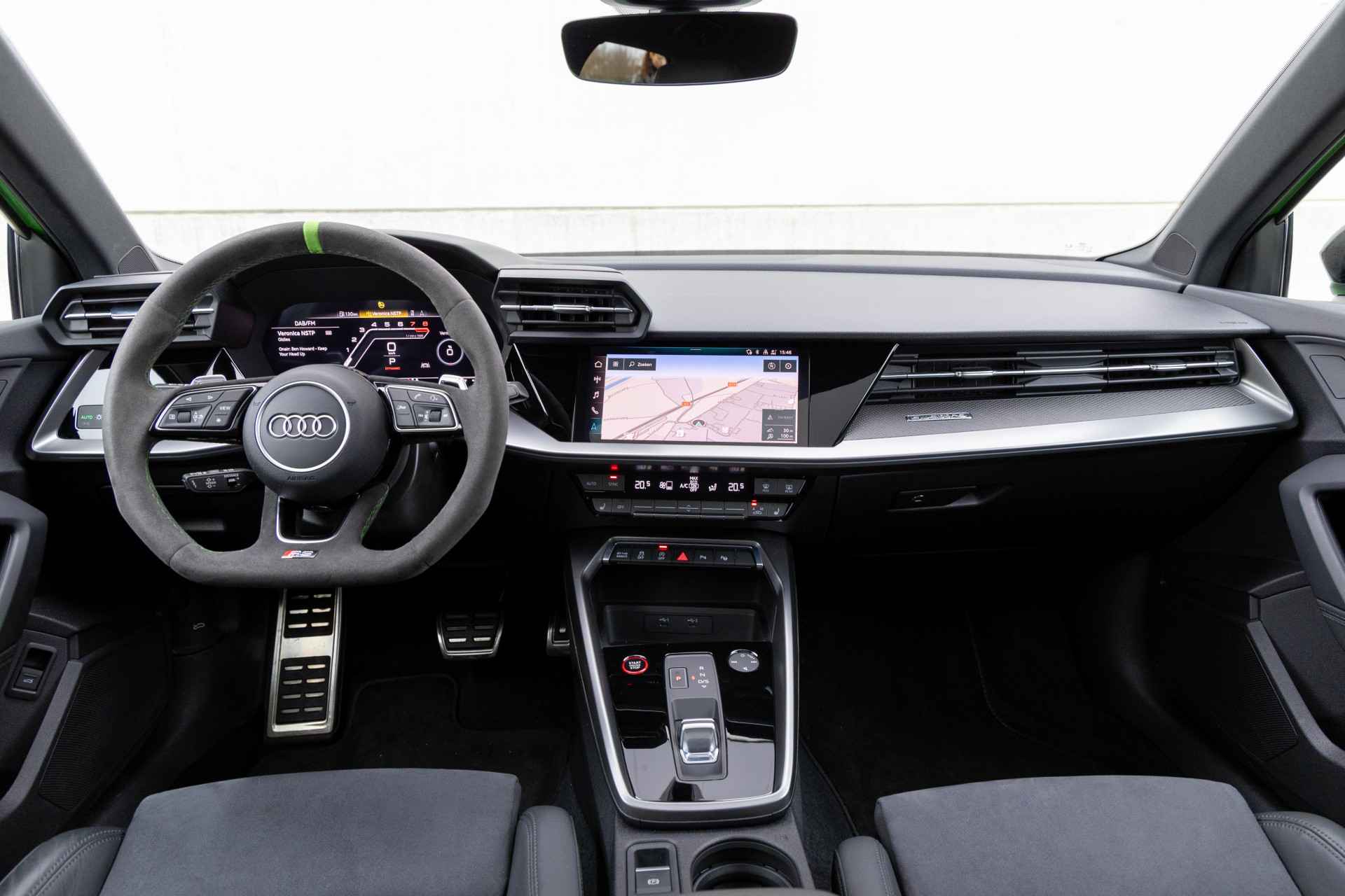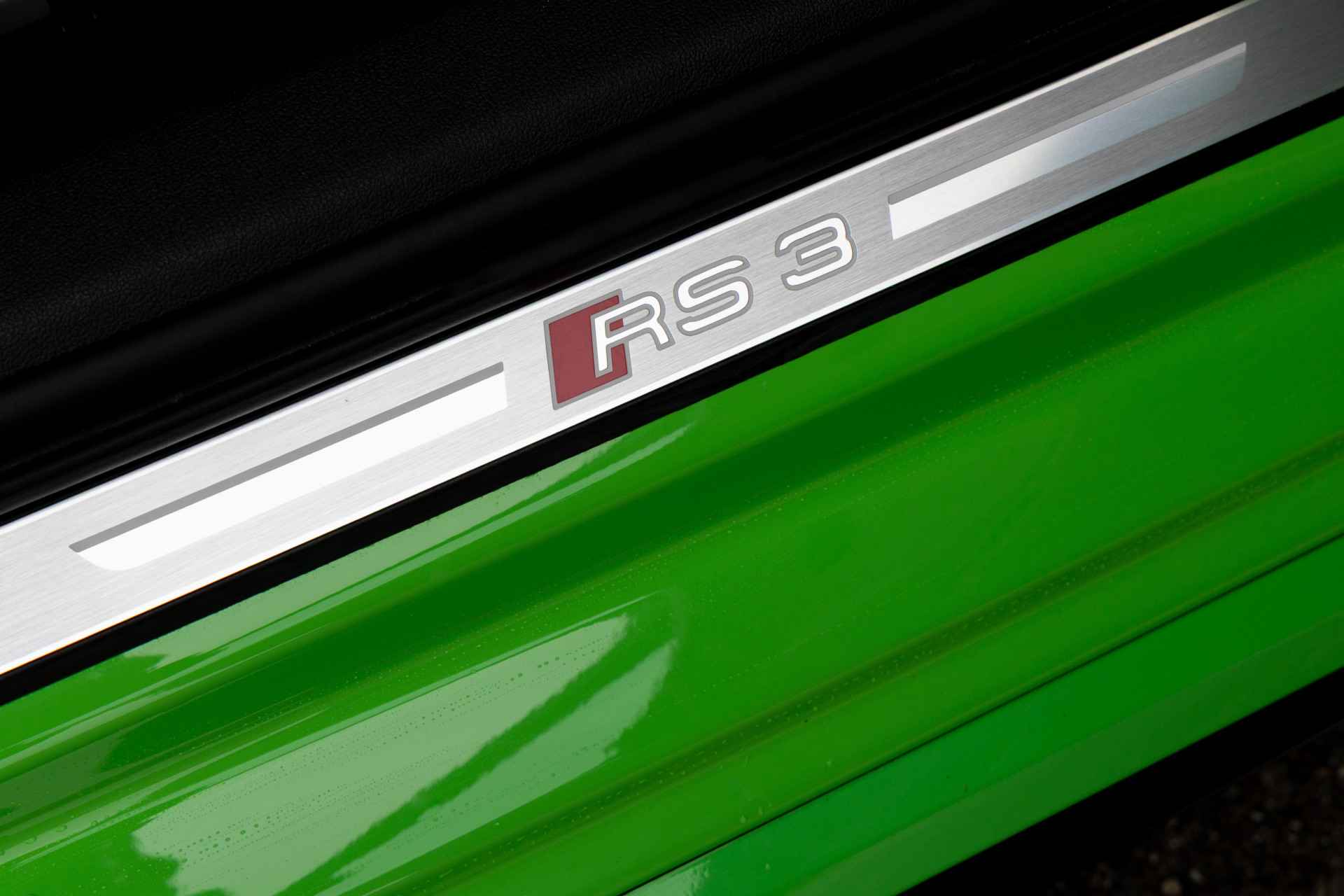 Deze uniek mooie Audi RS3 in de kleur KYALAMI groen heeft slechts 19.800 Km ervaring en is voorzien van volgende fabrieks opties: